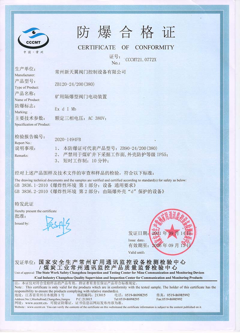 ZB20-24 200(660) 防爆合格證